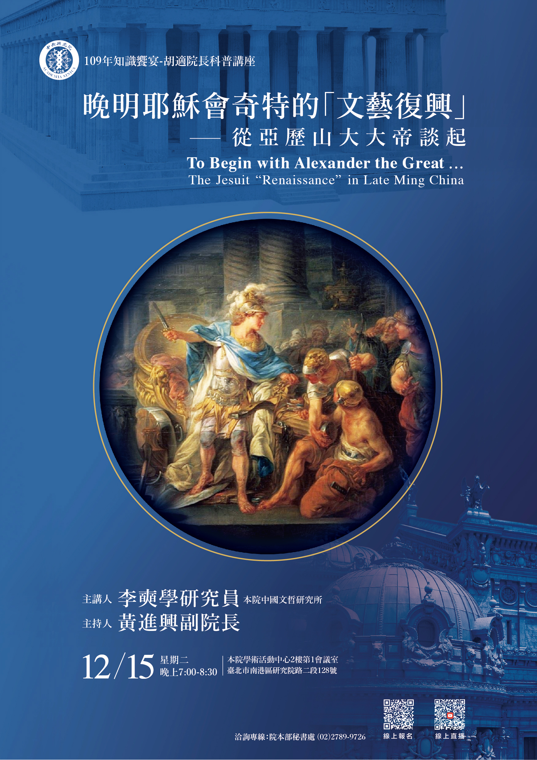 - 國文哲研究所李奭學研究員主講:晚明耶穌會奇特的「文藝復興」-從亞歷山大大帝談起(活動海
