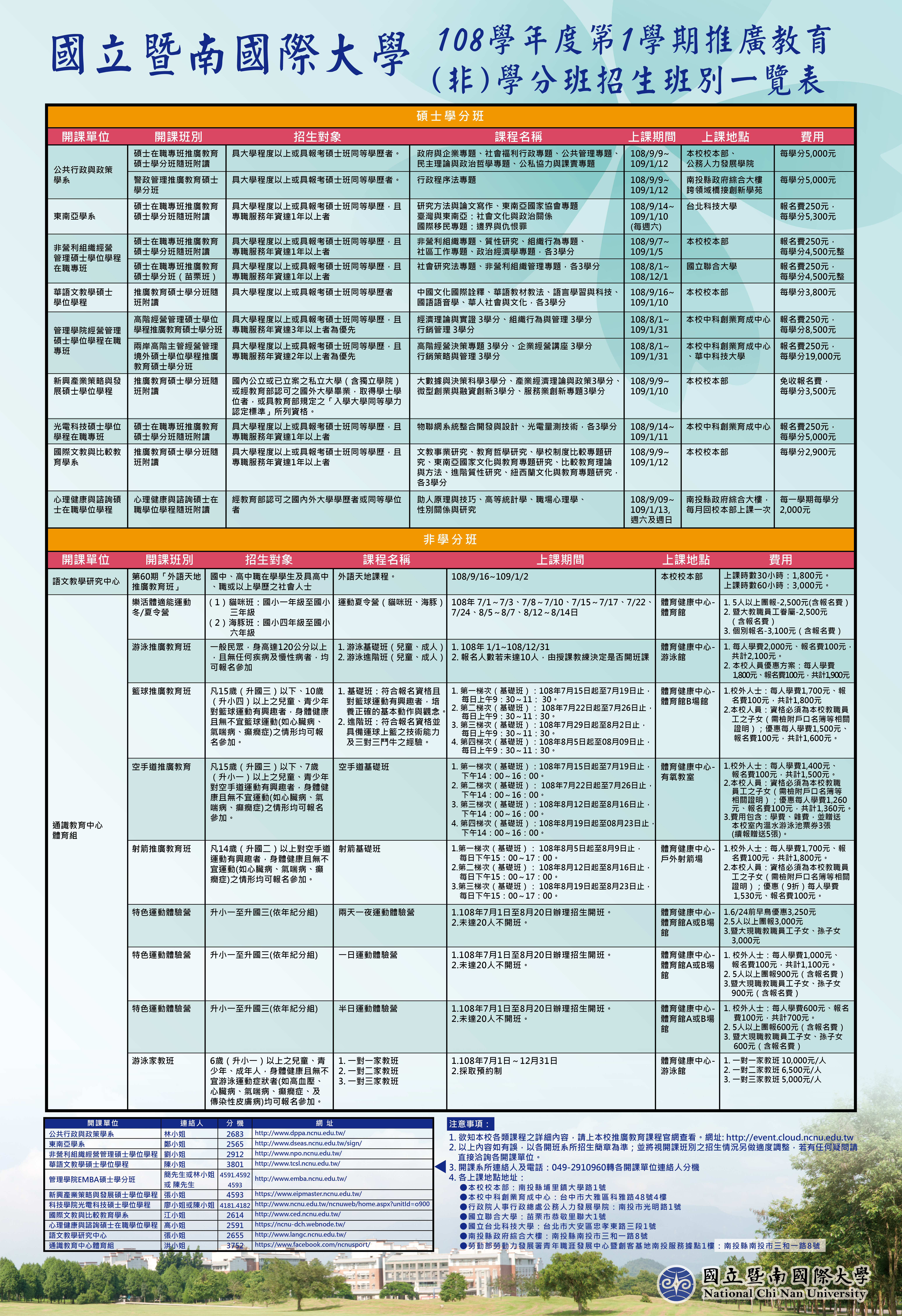 二、更多課程資訊請至本校推廣教育暨研討會報名系統查詢,網址:https://event.cloud.ncnu.edu.tw/。