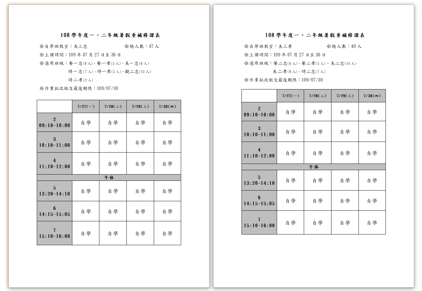(一)重補修日期:109年7月27日(一)至7月30日(四)
