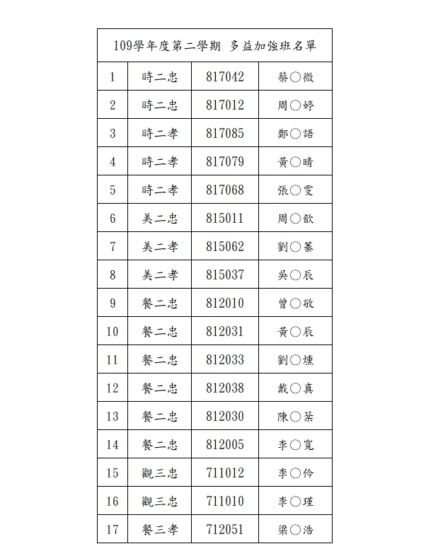 【公告】109學年度第二學期 多益加強學生名單及相關事項